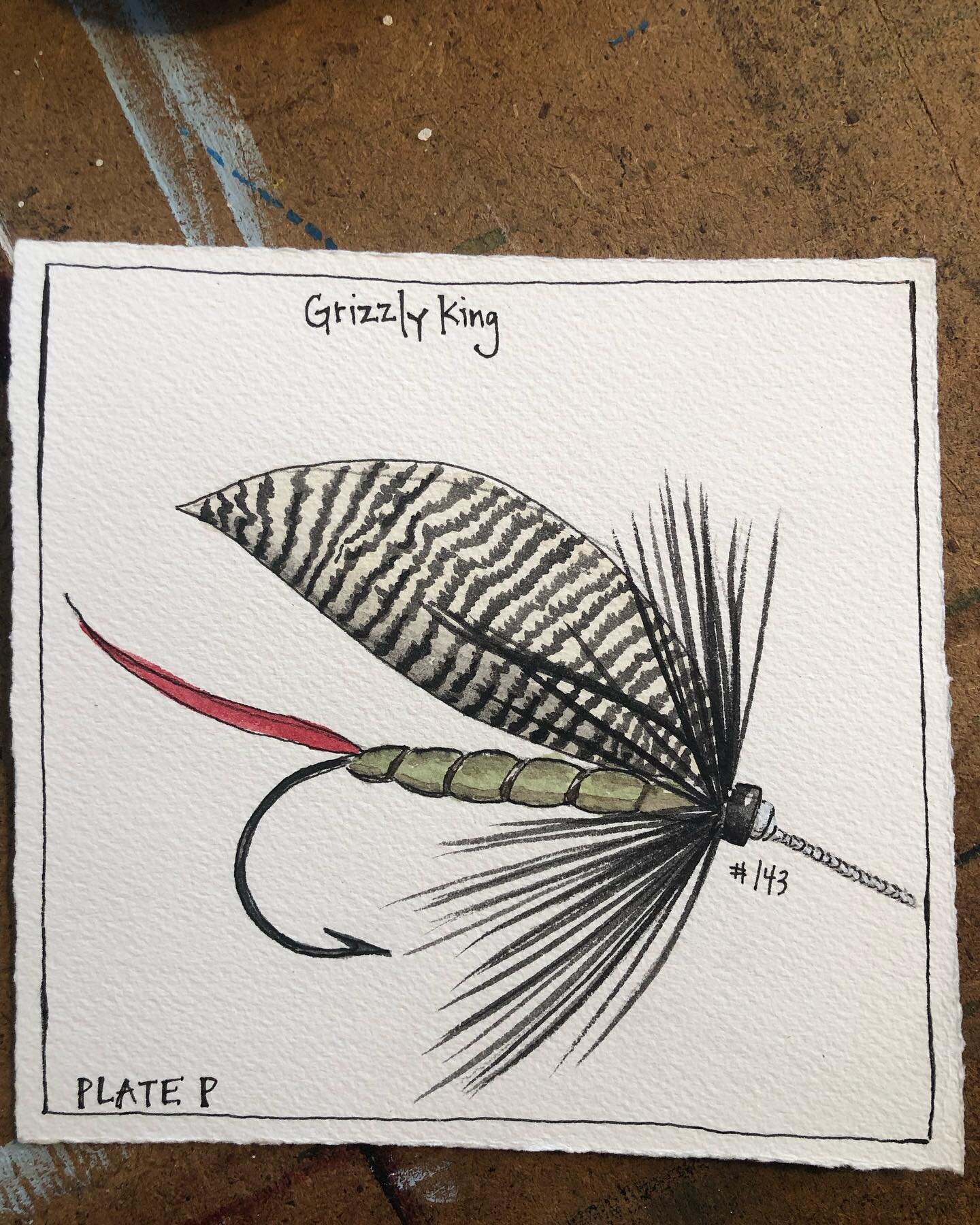 “I paint the flies very magnified. I paint them as accurately and proportionately as I can. I make sure I understand the textures, colors and action of the feathers, fur and materials used in each fly I paint. I like to know who originated each fly and what waters it comes from. More recently I have also enjoyed collaborating with some local tyers, painting some big, flashy pike flies. My medium is watercolor and I dabble with prisma color pencils as well.”